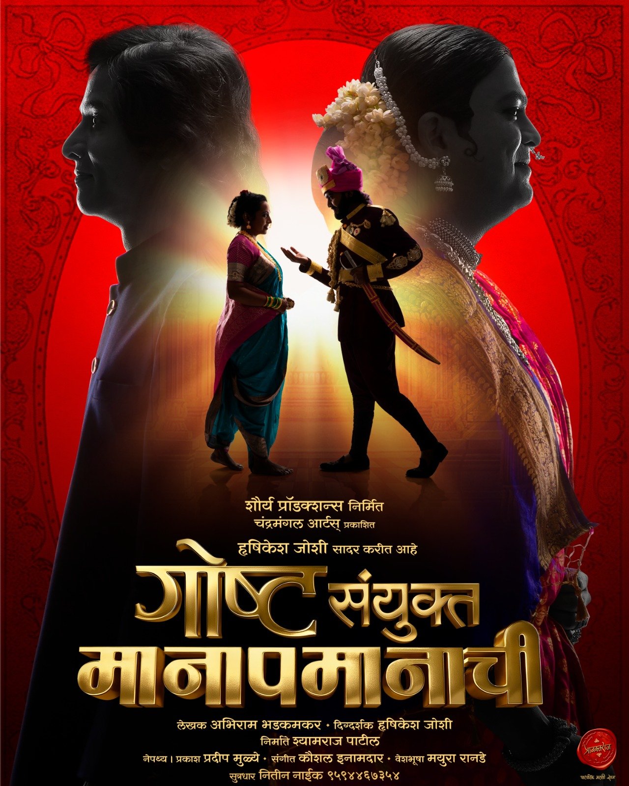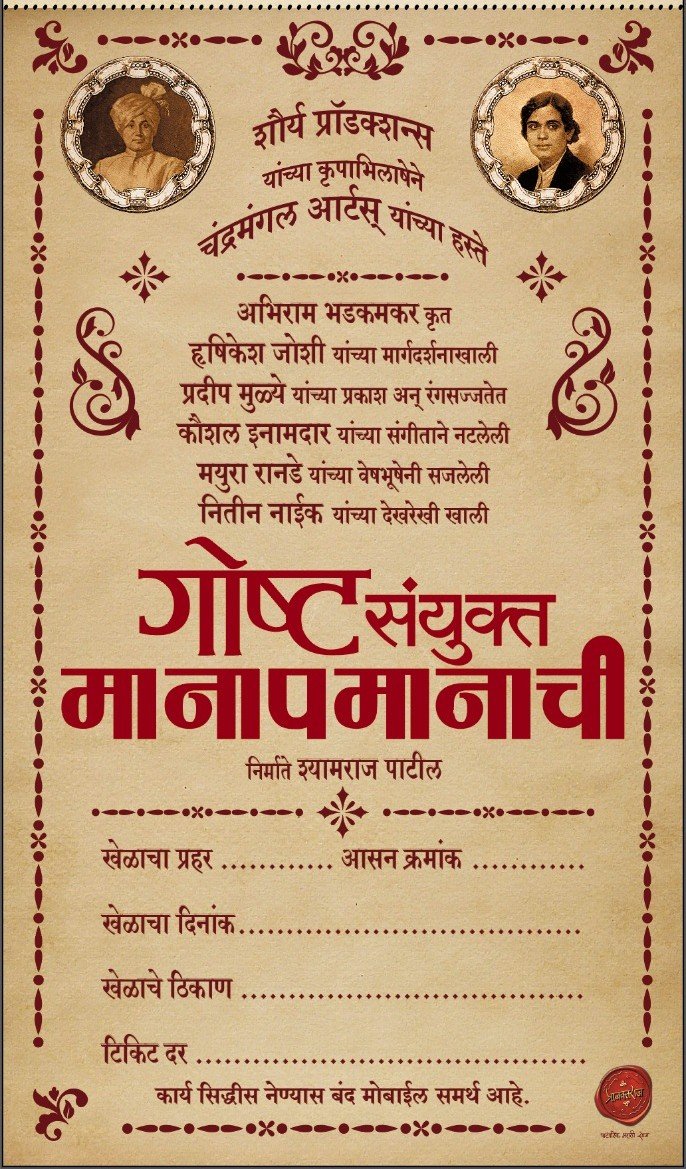 In 1920’s two legendary artists in Marathi theatre owning their own individual theatre companies, Sangeetsurya Keshavrao Bhosle‘s Lalit Kaladarsha and Balgandharva‘s Gandharva Natak Company both performed Manapman around that time. They had their own business calculations, and yet these two veteran artists decided to work together in a play to raise funds for the Tilak Swarajya Fund. Considering the surrounding circumstances, eco-socio politics, it was not that easy. Yet it happened and became the milestone of Marathi theatre.